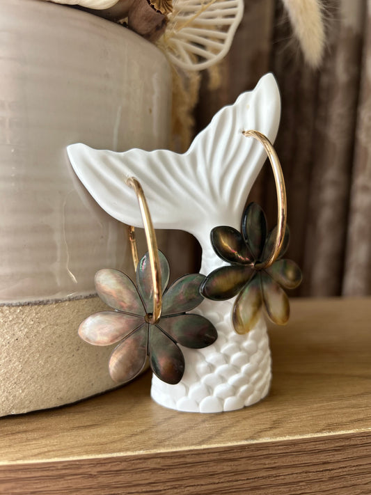 Black pearl floral hoops