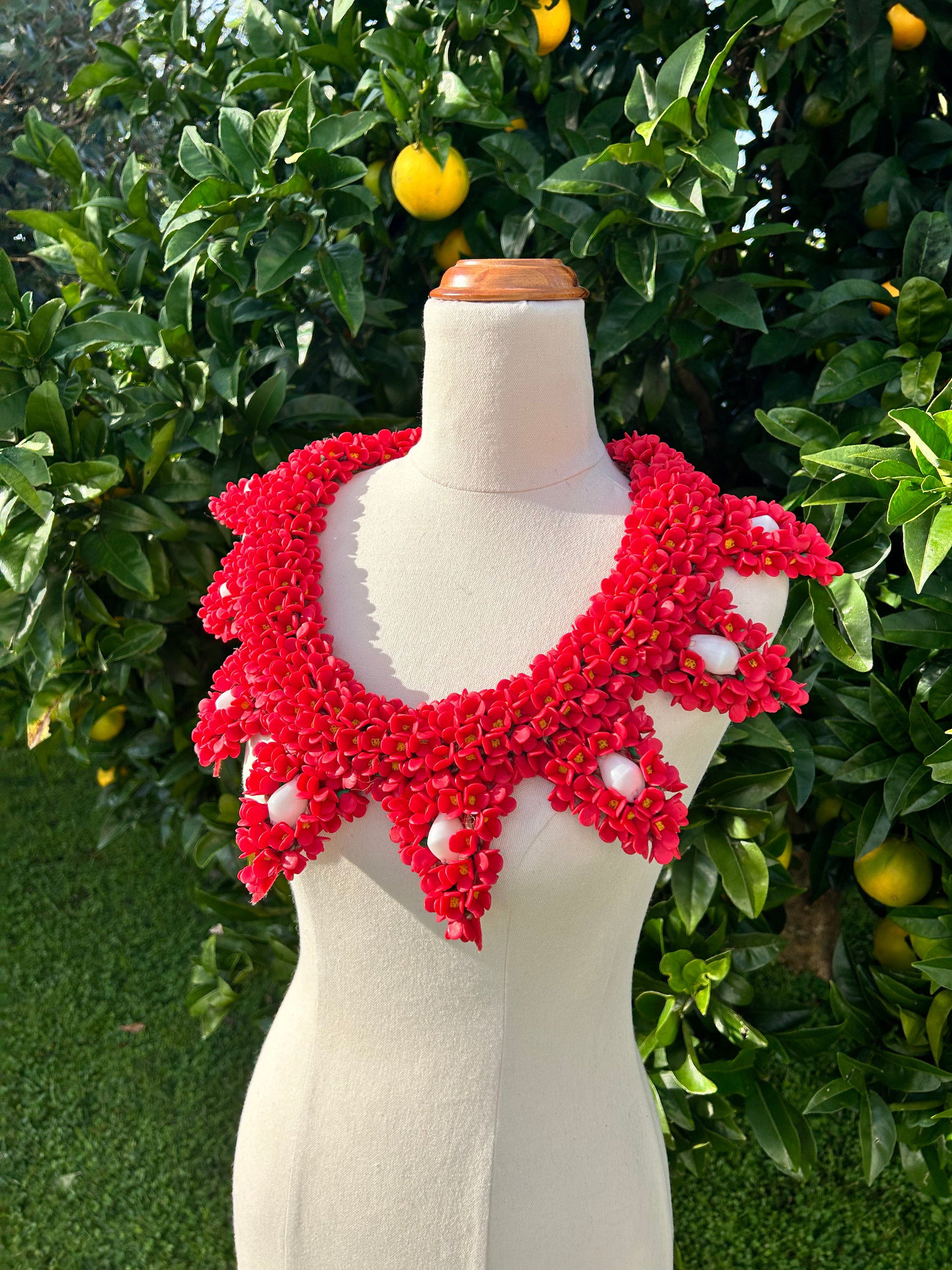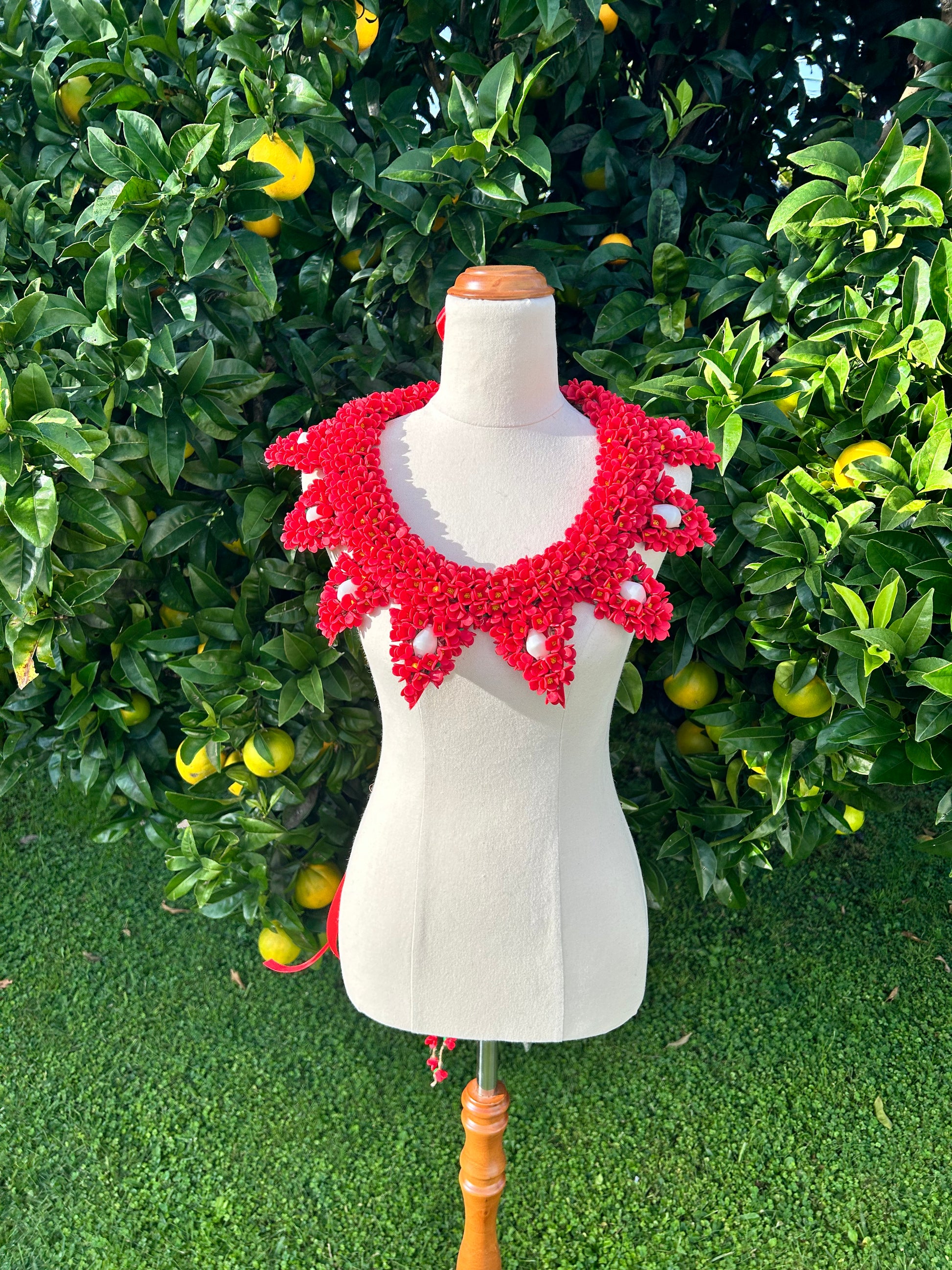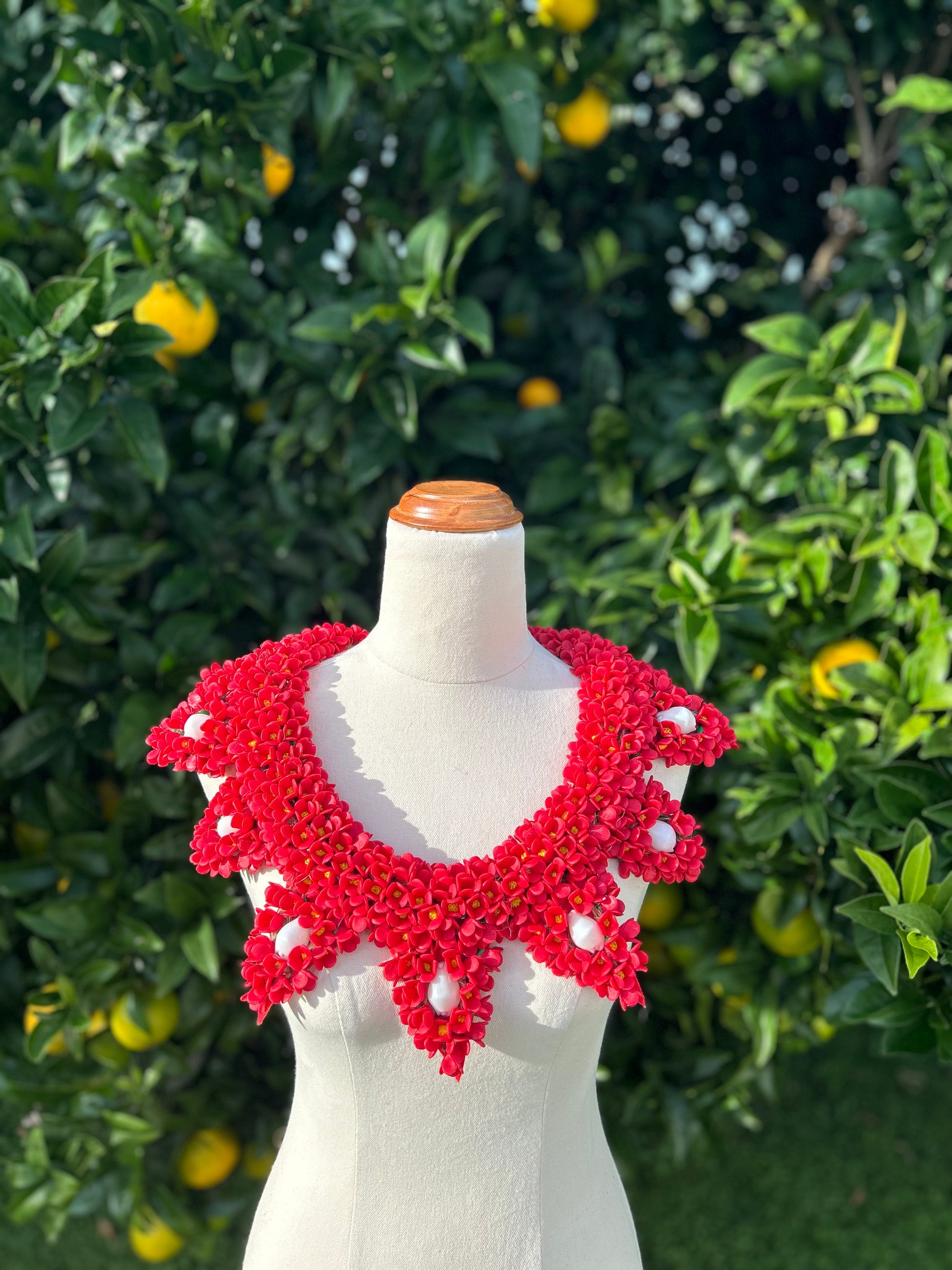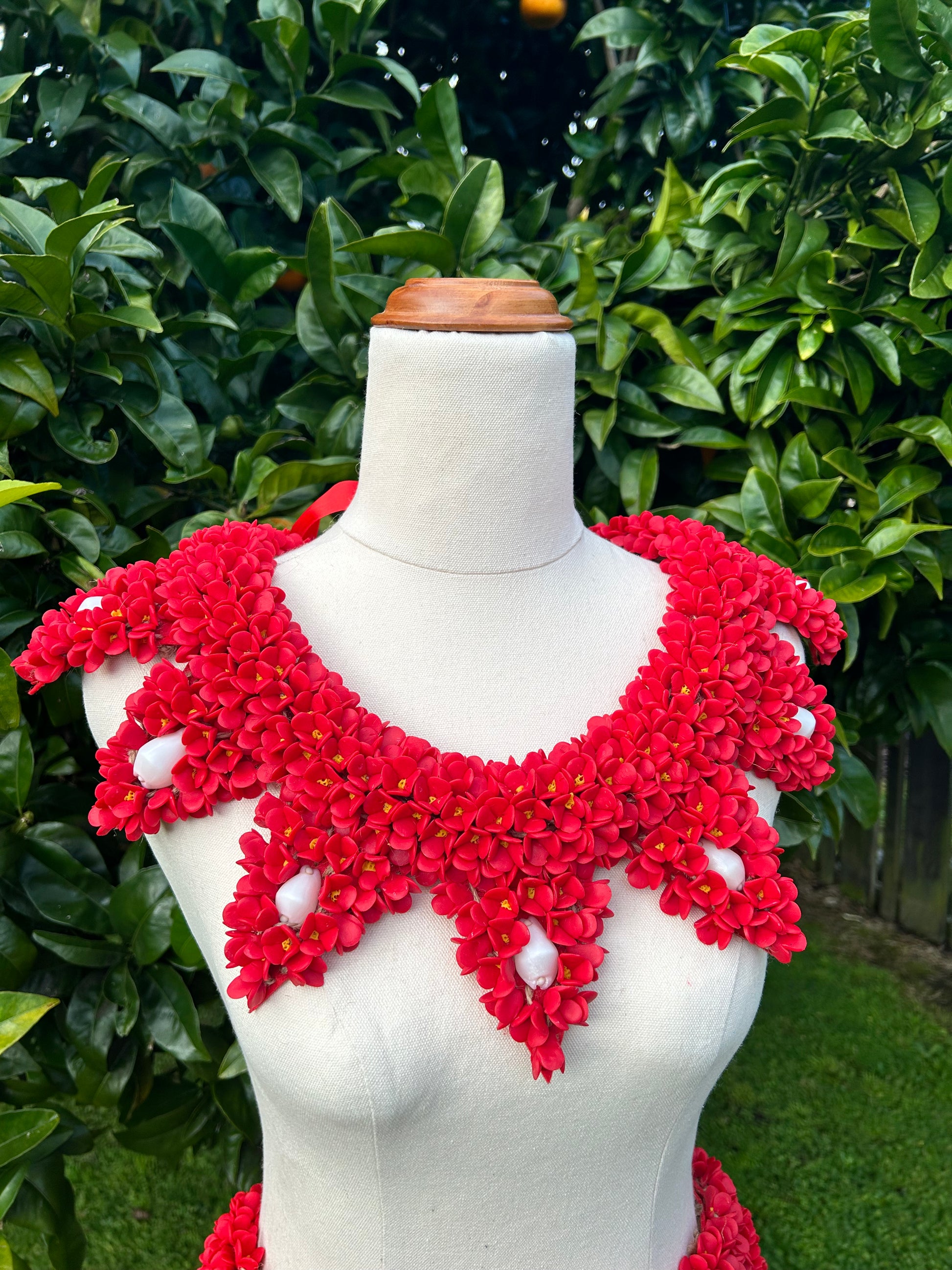 This beautiful red puleʻoto kahoa is perfect cowries and heilala combo. This is an adult size kahoa.